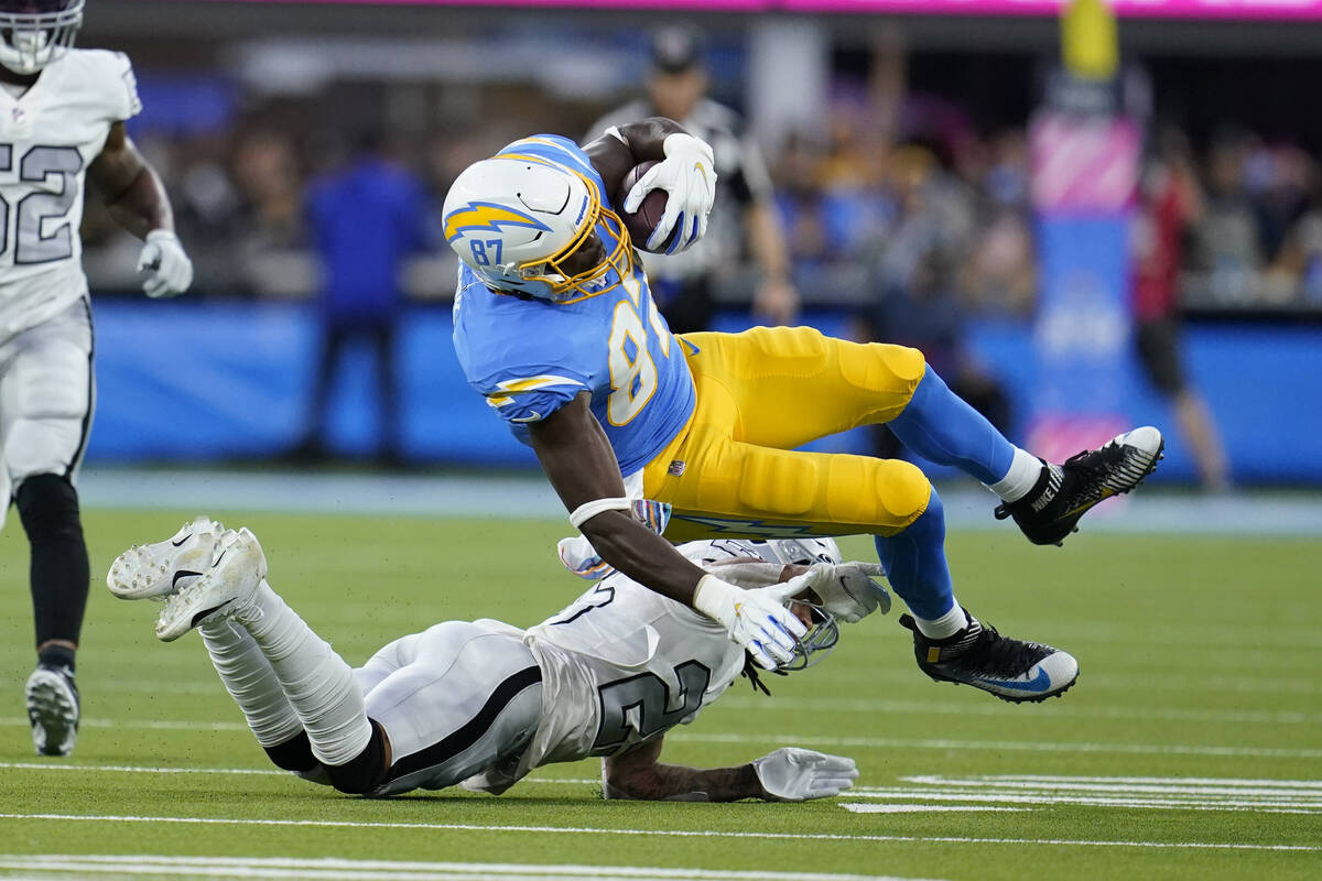 The Play: The Chargers snap the ball quickly — before the Raiders are fully set — and Justin Herbert finds Jared Cook in the flat for an easy six-yard gain.